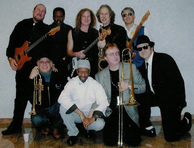 With Tommy O'Donnell, Bobby Harden, Rob Paparozzi and Larry Farrell during the 2014 Blues Brothers Tour